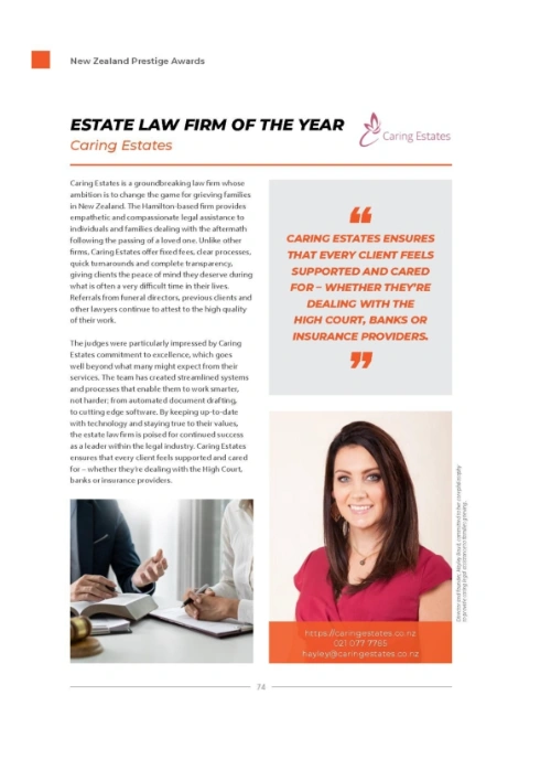 Caring Estates is a groundbreaking law firm whose ambition is to change  the game for grieving families in New Zealand. The Hamilton-based firm provides empathetic and compassionate legal assistance to individuals and families dealing with the aftermath following the passing of a loved one.